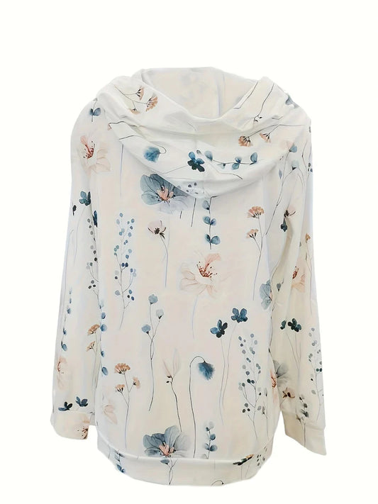 Women’s Floral Print Hoodie – Pullover With Hood, Drawstring and Kangaroo Pocket for Fall Layering