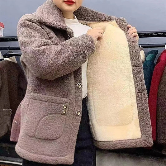 Women’s Fleece-Lined Winter Jacket – Button-Up, Thick Plush Interior, Warm Casual Outerwear