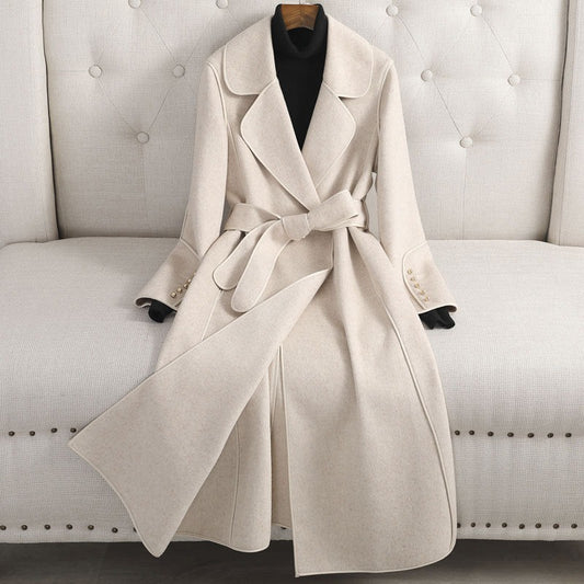 Women’s Wool‑Blend Shearling‑Trim Belted Coat