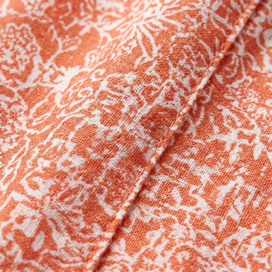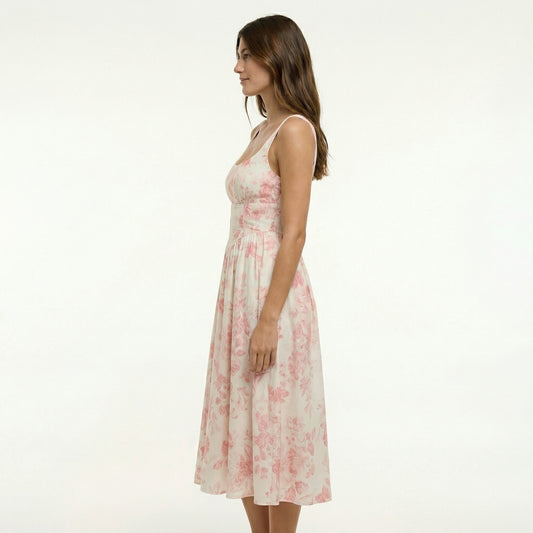 Coral Floral Midi Dress - Sleeveless, Linen Blend, Smocked Back
