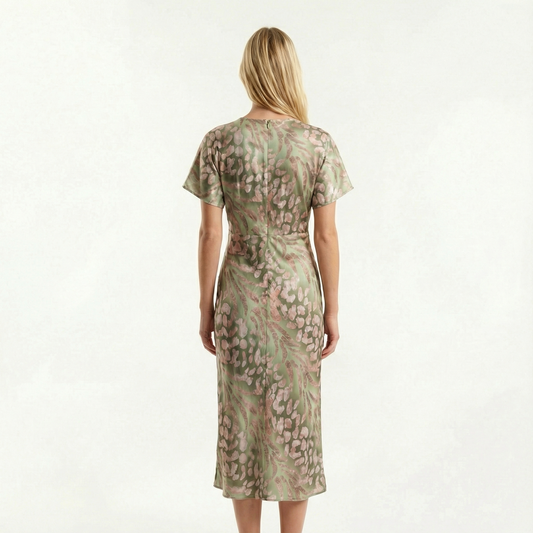 Wedding Guest Midi Dress - Wrap V-Neck, Elbow Sleeve, Side Pockets