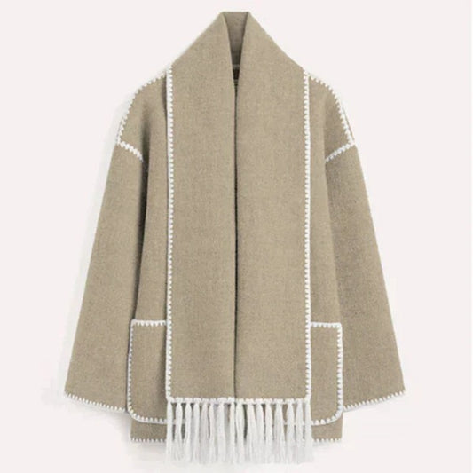Fall Scarf-Collar Wool Coat