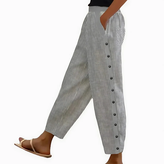 Women’s Striped Linen Pants - Breathable Cotton-Linen Blend