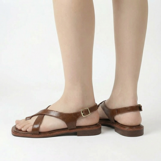 Leather Cross Sandals - Italian Leather, Cushioned Footbed, Adjustable Straps