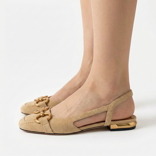 Slingback Flat Sandals - Chic Ergonomic Fit, Refined Gold Detail