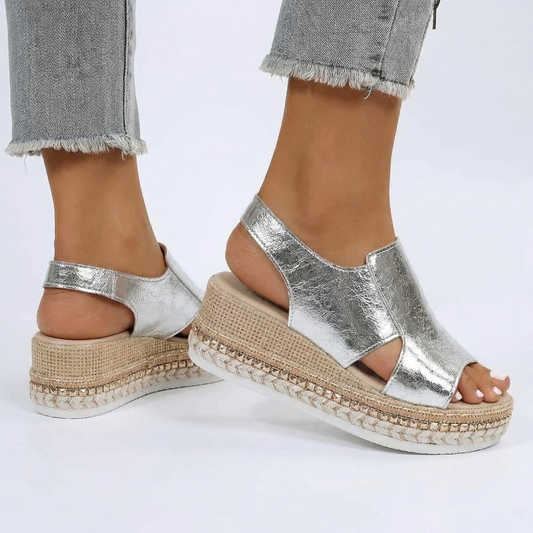 Wide Fit Platform Sandals - Metallic Finish, Extra Wide Toe Box, Adjustable Slingback
