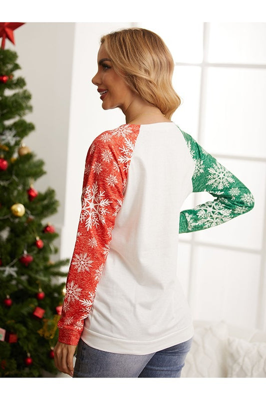 Plaid Sleeve Snowman Graphic Sweatshirt