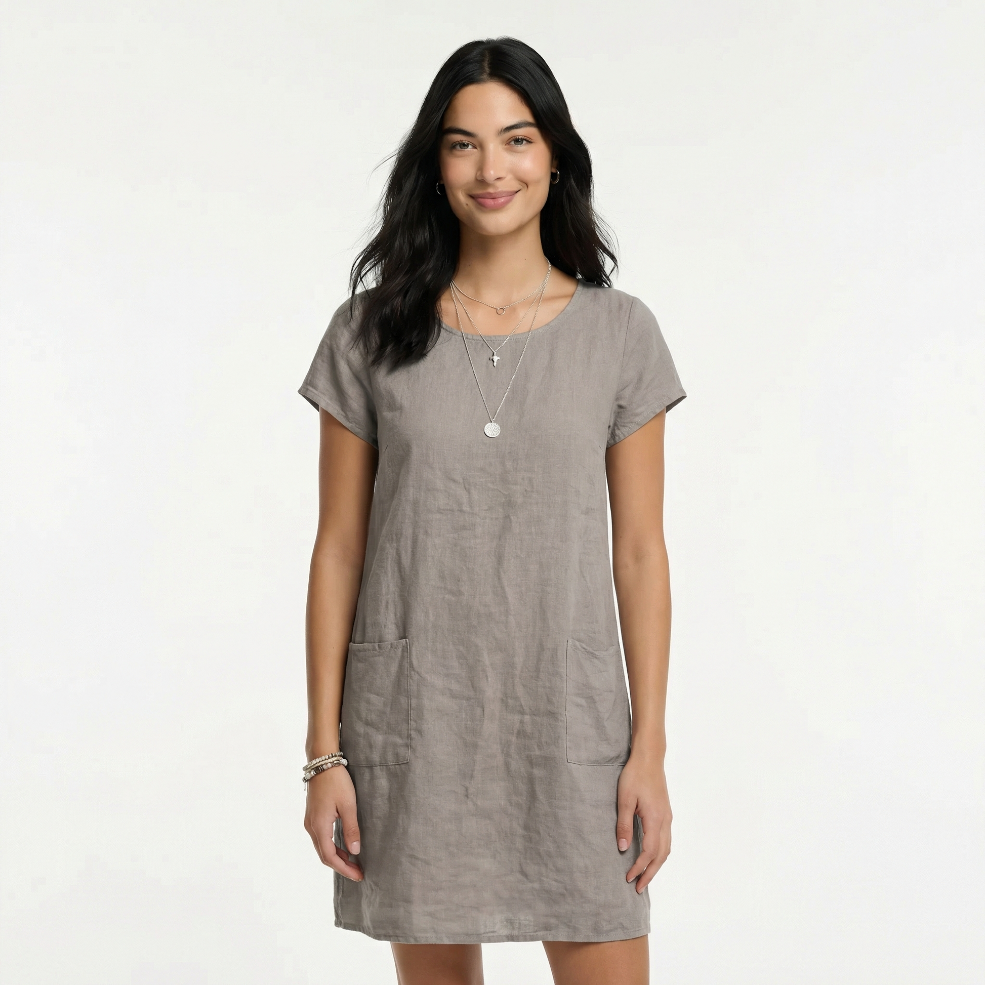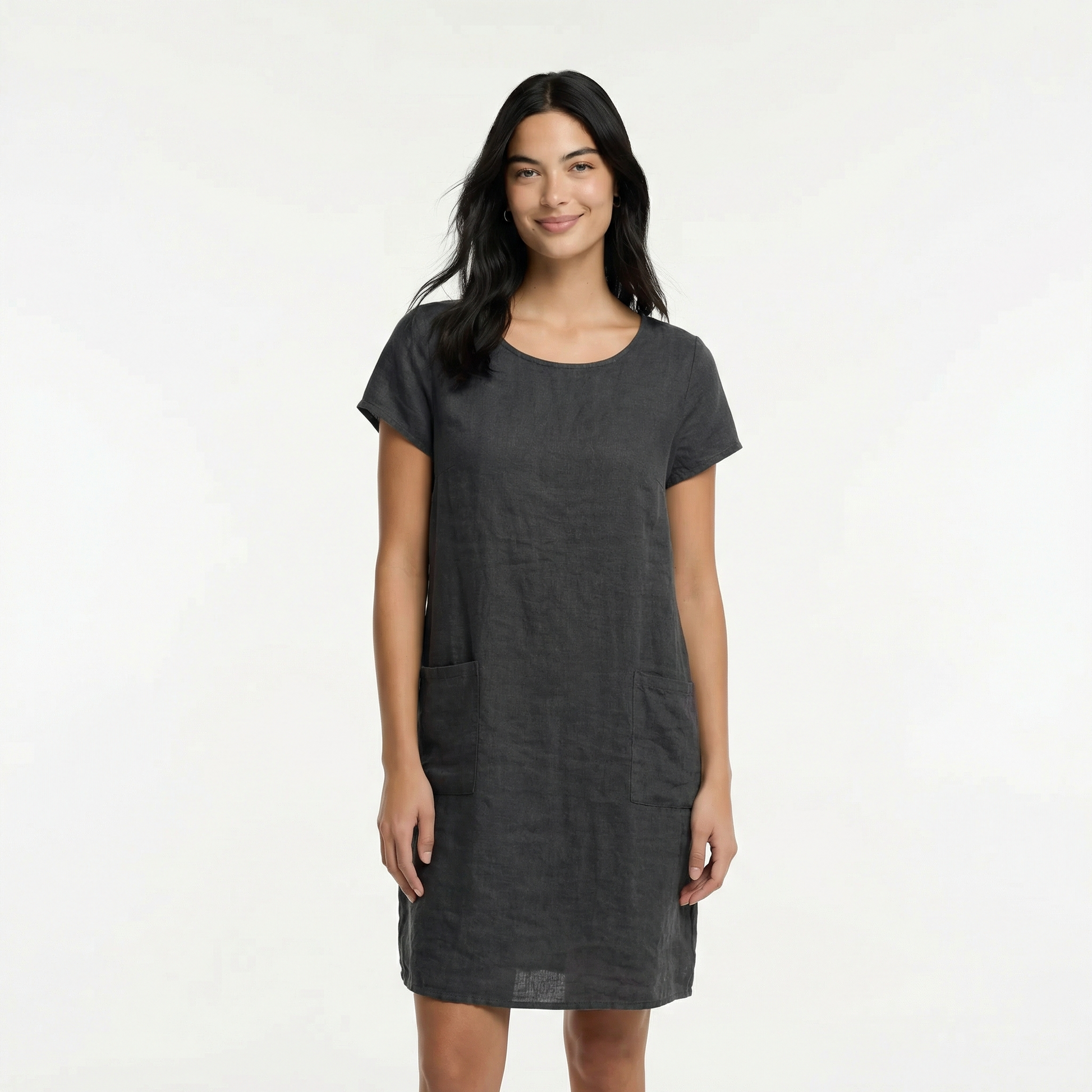 Cotton Midi Summer Dress - Short Sleeves, Relaxed Fit, Pockets