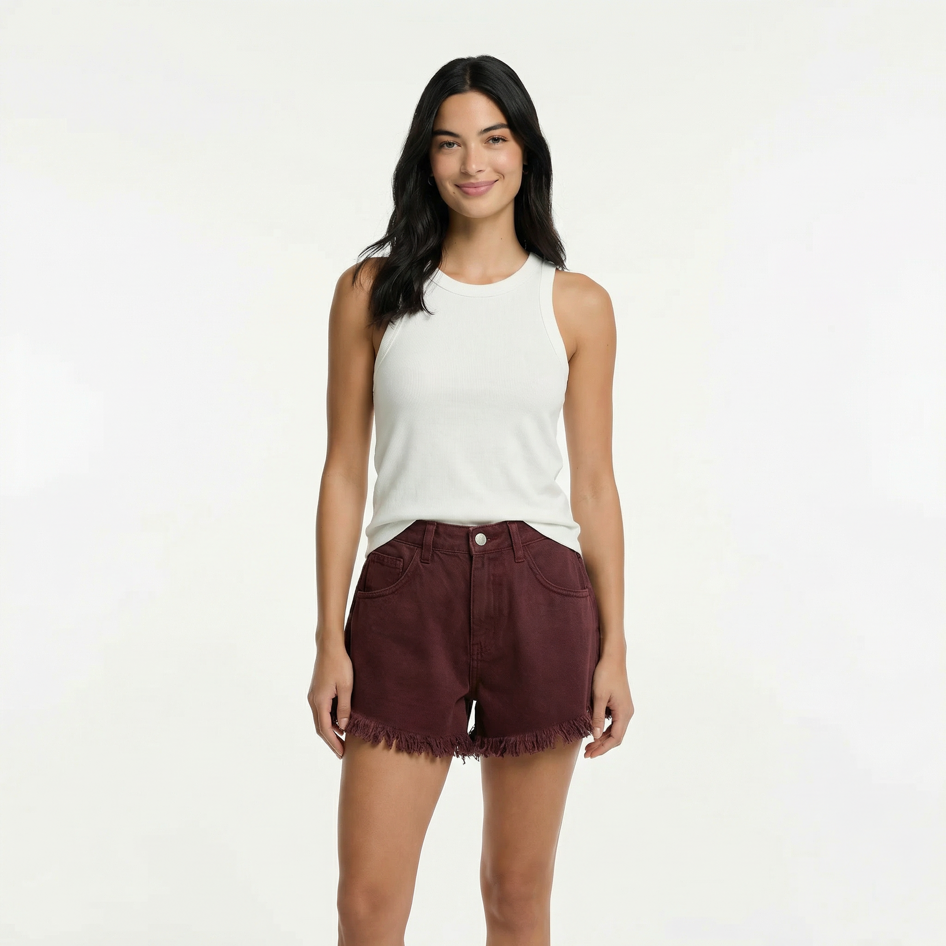 These denim shorts are designed for easy summer days when you want to feel comfortable and put-together without trying too hard. The high-rise waist creates a flattering shape, while the laid-back fit and raw hem give your outfit a carefree, off-duty vibe.