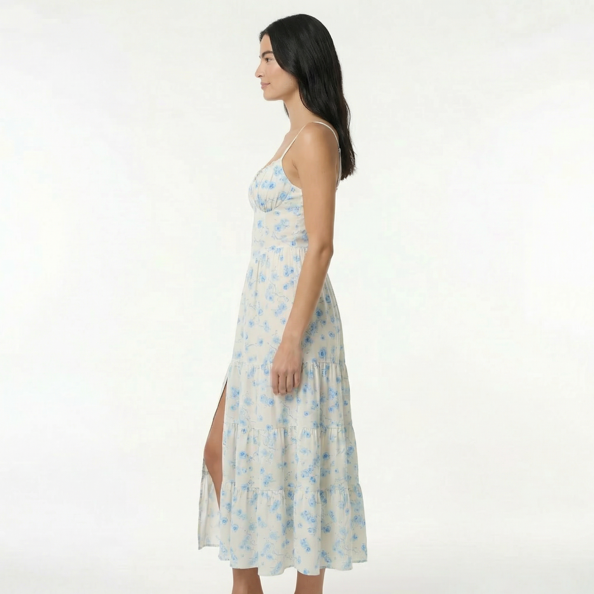 This sleeveless floral maxi dress flows beautifully with every step, offering a relaxed yet polished look you can wear from daytime plans to evening strolls. The soft rayon fabric drapes comfortably, while thoughtful details add just enough structure without feeling restrictive.