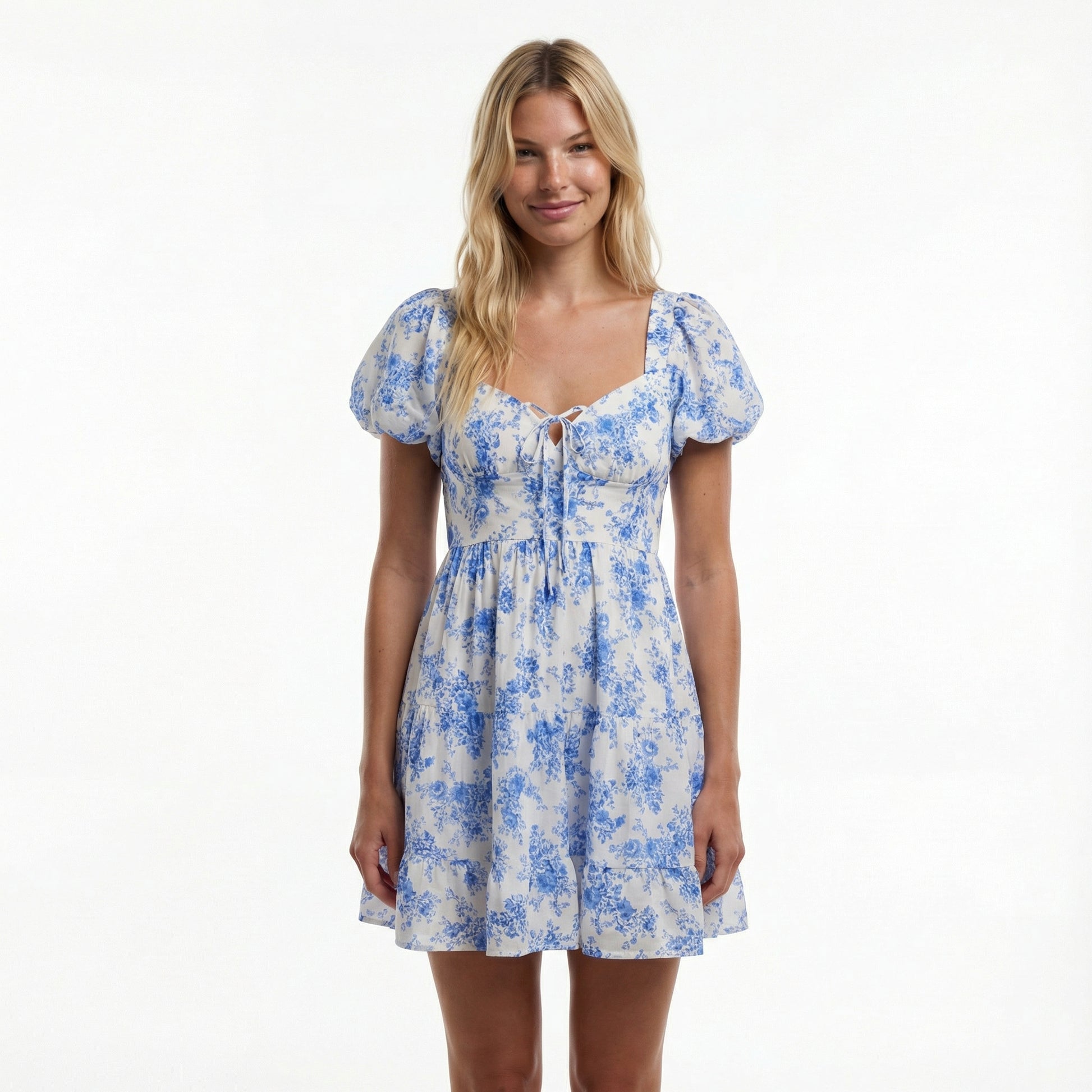 This floral mini dress blends a relaxed silhouette with thoughtful details that feel fun and wearable. The sweetheart neckline and open-back tie create a soft, feminine look, while the tiered skirt adds movement you’ll love as you go about your day.