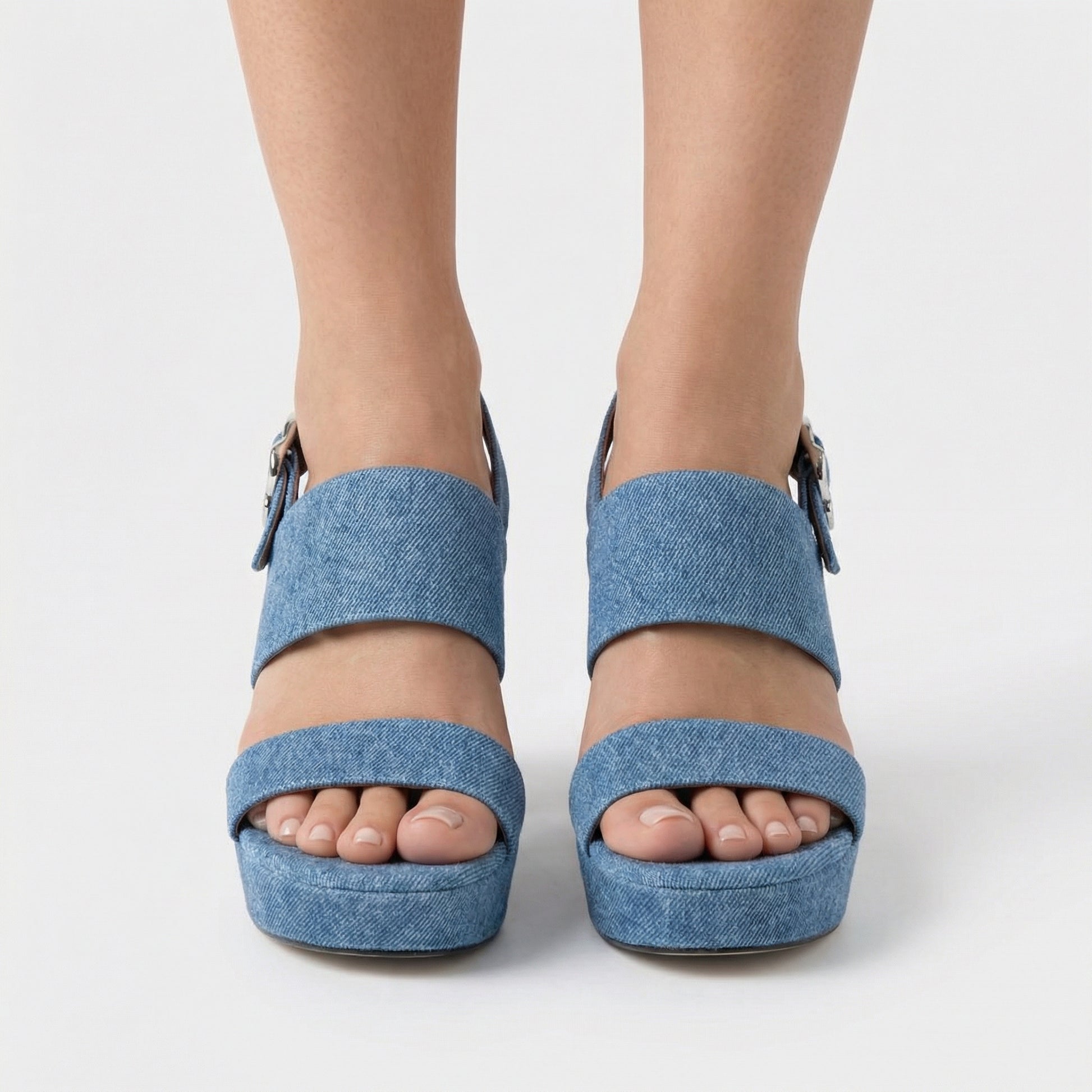 Stone Platform Sandals - Round Toe, Buckle Closure, Slip-On Design
