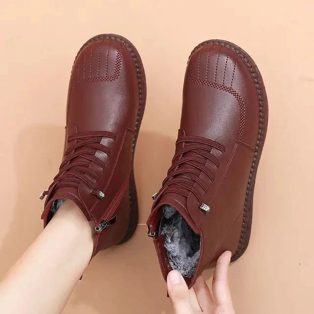 Women’s Faux Leather Lace-Up Ankle Boots – Heart Stitch Detail, Side Zip, Textured Rubber Sole – Fall Footwear